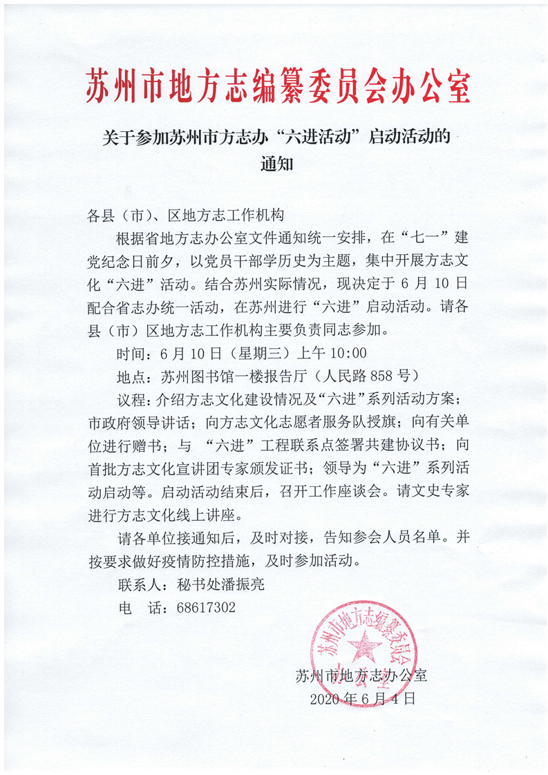 关于参加凯发k8登录入口市方志办“六进活动”启动活动的通知