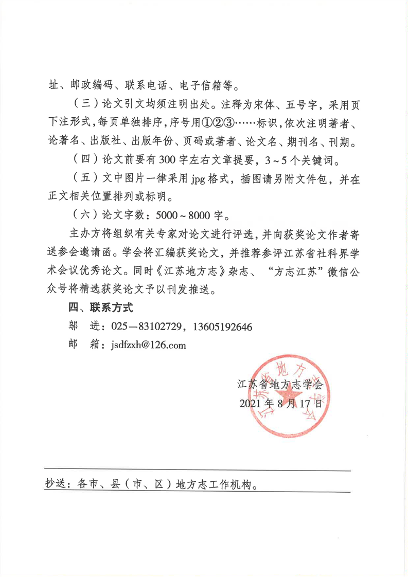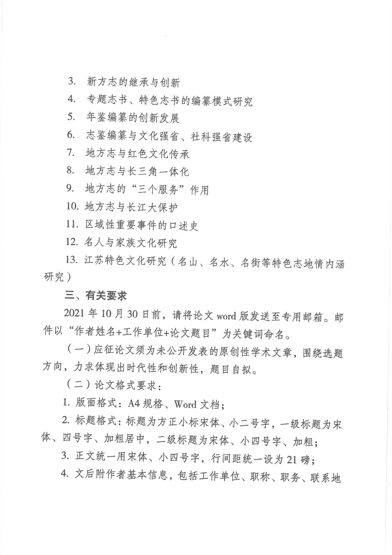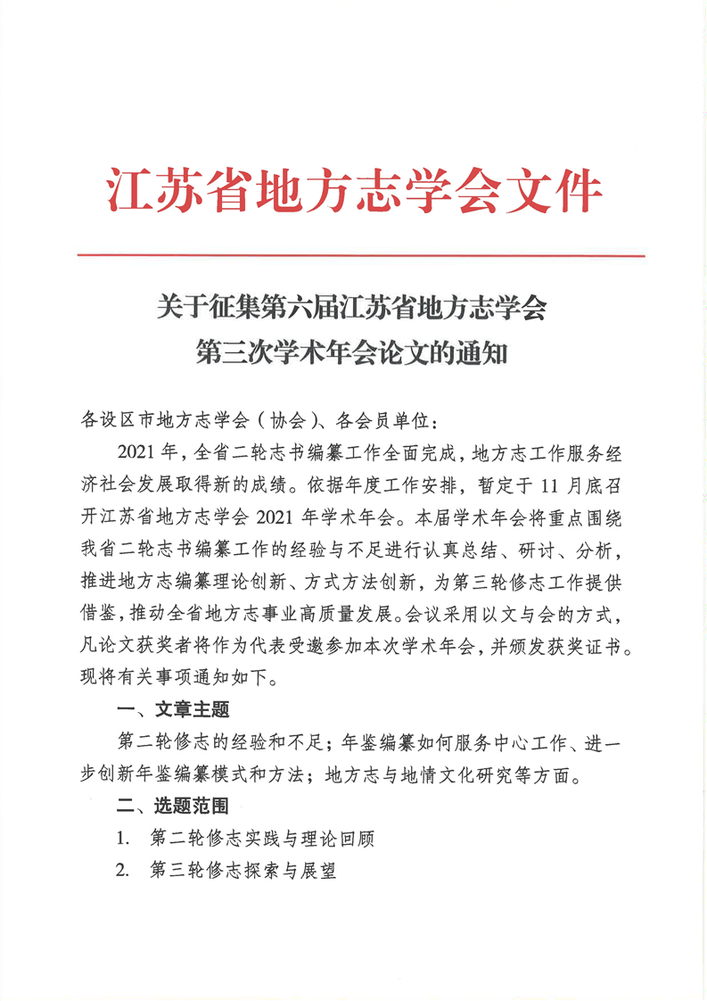 关于征集第六届江苏省地方志学会第三次学术年会论文的通知