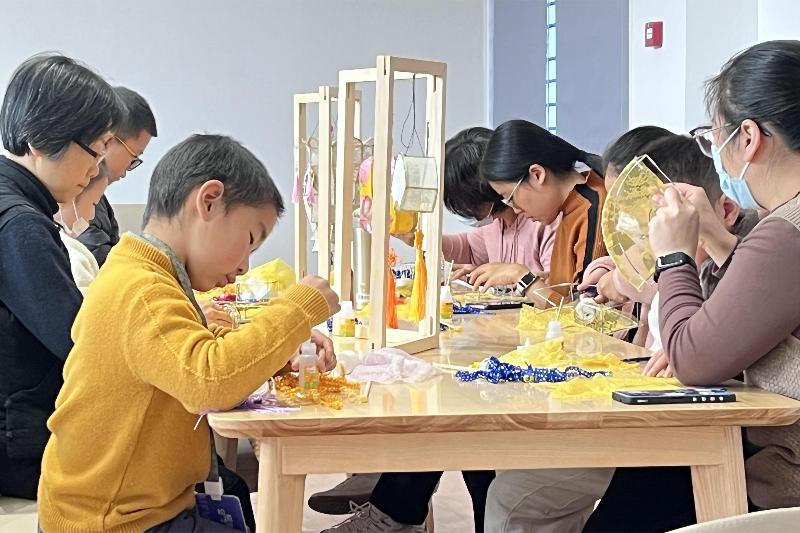 据《武林旧事》载:“灯之品极多,每以‘苏灯’为最,圈片大者径三四尺,皆五色琉璃所成。”苏灯的精妙绝伦,是凯发k8登录入口工艺美术历史上的一项成就,与“苏作、苏工、苏绣”相比,其技艺之精巧、文化内涵之丰富,也毫不逊色。但到了现在,因文化习俗的变迁,苏灯的知名度相较于其他非遗技艺来说有所弱化,为了更好的传承苏灯技艺,提升苏灯技艺的知名度,我们特别邀请了凯发k8登录入口市民间文艺家协会副主席、苏灯技艺代表性传承人崔斌,为参与活动的观众和孩子们传授苏灯技艺,并发放了制作物料,让孩子们自己动手制作苏灯,打造出专属于自己的苏灯作品。
