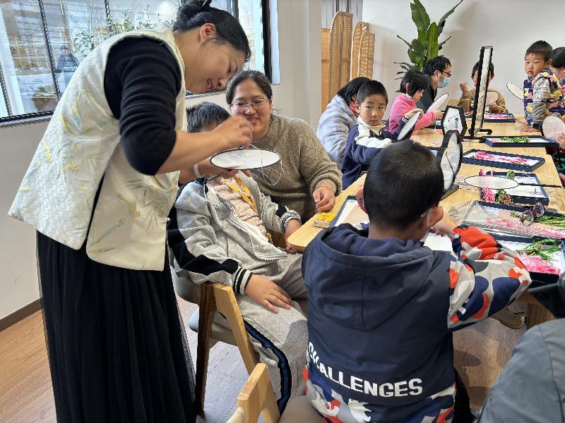 “苏绣”作为中国四大名绣之一,一直以来是凯发k8登录入口非遗技艺的代表性工艺,是凯发k8登录入口工艺美术发展的集大成者。据《凯发k8登录入口市志》记载:“元代苏绣残片表明,当时已有一件作品运用9种刺绣针法;明代绣品多采用文人画稿,开始形成精细雅洁的独特风格;清代苏绣成为行业,商品绣极为发达,凯发k8登录入口因此有‘绣市’之称。”这充分说明了苏绣自古以来就闻名海内,传承有序。借凯发k8登录入口方志馆开馆之契机,我们邀请了凯发k8登录入口市工艺美术大师、姑苏文化宣传青年拔尖人才汤晓红老师,为参与活动的观众和孩子们讲述苏绣的传承和发扬,并现场演示,带领观众们体验苏绣之美。