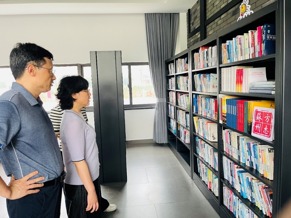 调研组一行实地参观学习太仓市浮桥镇方桥村的老街特色村庄风貌保护工程,并调研方志“六进”活动赠阅的志鉴地情书籍在方桥村的新时代文明实践站点的使用运转情况。