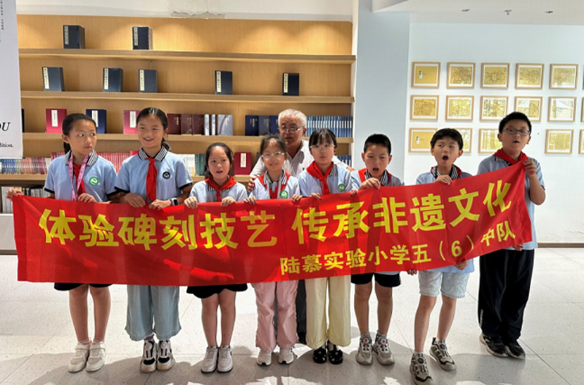 戈老师1991年就成立了戈氏艺术碑刻工作室,其学生弟子遍布业内。此外,他还积极参与非遗进校园、进社区、进园林、进寺庙的公益活动,传授拓碑技艺,介绍碑刻技艺,并免费提供碑拓作品供爱好者学习欣赏。同时,还到全国各地开展不同主题的碑刻拓片展览。