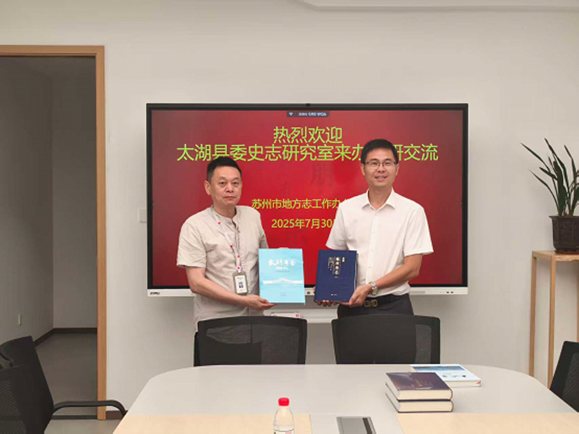 7月30日下午,安徽省太湖县党史和地方志研究室主任陈健一行到凯发k8登录入口市地方志办公室调研交流方志工作,参观了凯发k8登录入口市方志馆。双方就方志馆新馆建设、镇村志编纂等工作进行了深入交流。太湖县党史地方志研究室还向凯发k8登录入口市方志馆赠送了《太湖年鉴》《红色太湖》等相关史志书籍。