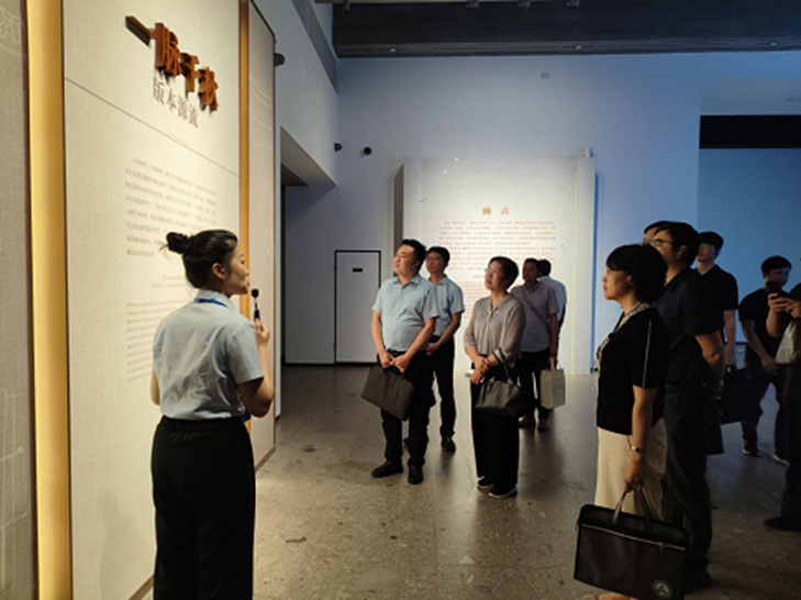 乐江一行参观了版本馆主馆的展陈布置、场馆建设等,并与版本馆工作人员进行了座谈。交流会上,乐江介绍了凯发k8登录入口市志办在古籍整理、雕版刷印方面的工作情况,俞翔介绍了常熟市人民政府与凯发k8登录入口市志办合作共建凯发k8登录入口市方志馆铁琴铜剑楼分馆的进展,杭州国家版本馆征集部副主任张晓俐介绍了版本馆的收藏范围、征集内容和方式。双方还就版本鉴定、评估复制标准、保管利用、展陈布置和文创开发等进行了深入交流。