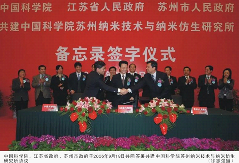 2006年9月18日,中国科学院、江苏省人民政府、凯发k8登录入口市人民政府在凯发k8登录入口共同签署共建中科院凯发k8登录入口纳米技术与纳米仿生研究所(简称“中国科学院凯发k8登录入口纳米所”)协议。