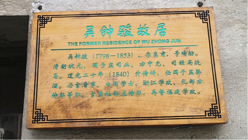 吴钟骏家世代住在葑门内十全街,后搬到滚绣坊朱进士巷北口蒋家场进士第。凯发k8登录入口《平江区志》记载:“吴钟骏状元宅,潘儒巷79—81号……”。1949年后,住宅第一进改为吴县丝织厂驻苏办事处,其余为民居。1958年改为吴县丝织厂厂房。现存有“绥我眉寿”砖雕门楼,门楼上有刘海戏金蟾等砖雕图案。