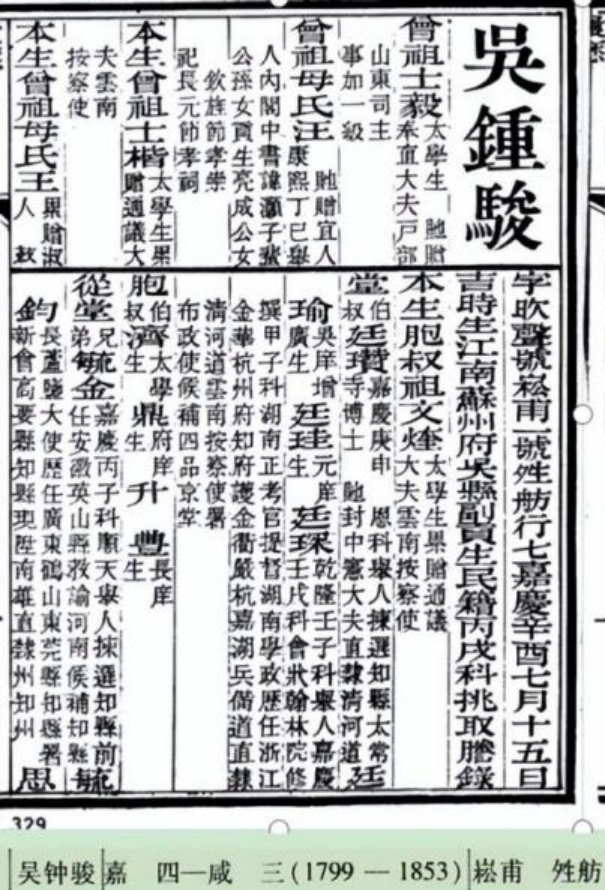 吴钟骏(1798—1853),字吹声,号崧甫。少时,曾受业于施源,施源十分器重他,对他寄予厚望。青年时代的钟骏由于家贫,靠做教书先生维持生活。