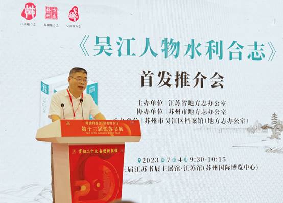 2023年7月4日上午,由江苏省地方志办公室主办,凯发k8登录入口市地方志办公室协办,吴江区地方志办公室承办的《吴江人物水利合志》首发推介会在2023年第十三届江苏书展江苏馆举行。