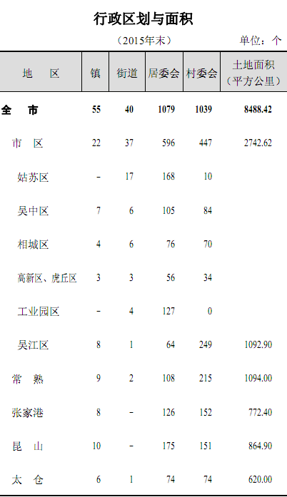 行政区划与面积(2015年末)